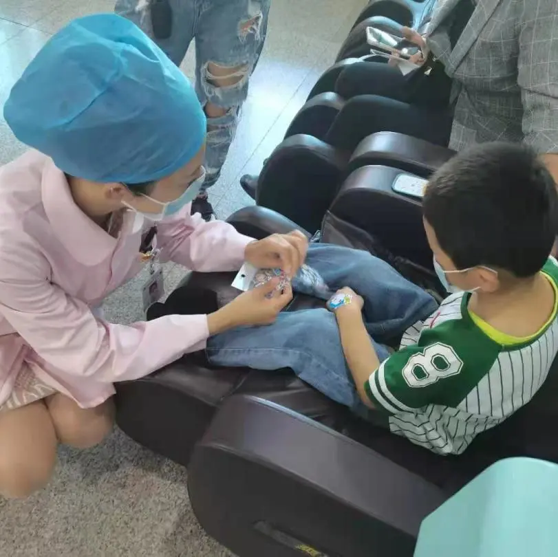 “小朋友你真勇敢,阿姨采血就是看看你血液里是不是藏着小捣蛋,我们要一起把他抓走,然后你就健健康康出去玩了”。小朋友采血是一个巨大的工程,采血后的哭闹既影响候诊患者的心情,也影响采血速度。门诊部医护人员针对这种现象集思广益,不仅主动引导,还设置了儿童爱心盒,里面有糖果,卡通创可贴,小红花鼓励贴纸。虽然物品很小,但作用很大,一块糖暖心间,送你一朵小红花,完成一种称赞的仪式,贴上儿童卡通创可贴防止小朋友沾水感染。这是门诊部最新推出的暖心服务,渐渐地,孩子的哭声少了,家长和其他患友的笑容增加了,大家看到这样暖心又贴心的服务,都竖起了大拇指为门诊部点赞。
