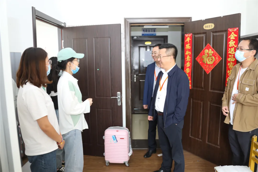 在返校日当天,医院院长、党委副书记李忠原带领副院长刘忠锦、学生科副科长马鑫查看了医院迎新生工作。在报到点,医院领导看望慰问了现场工作人员,详细询问了新生报到情况,并与报到的学生进行亲切交流。在学生宿舍,李院长鼓励他们在附属一院安心学习、快乐生活,嘱咐同学们有困难一定要和辅导员老师沟通,并祝愿大家在附属一院努力绘制人生新篇章。