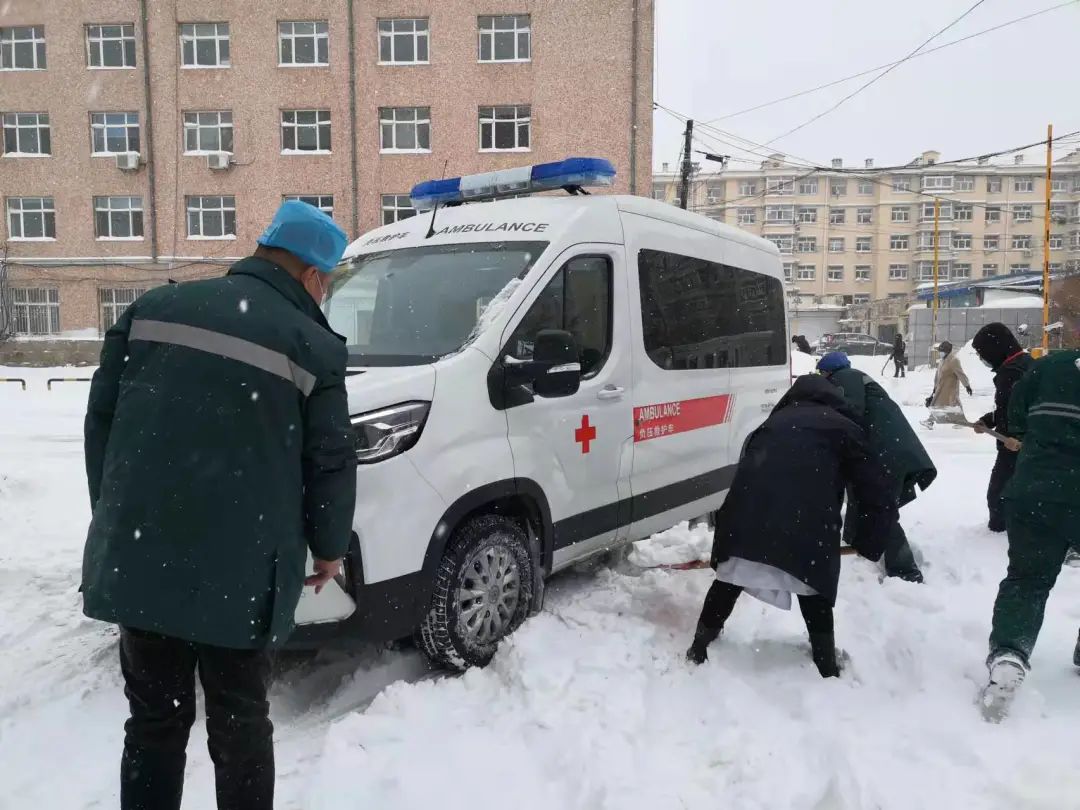 大雪没有停歇,为了做好极端天气的医疗救援工作,全力保障群众的生命健康安全,齐医附属一院及时启动了应急预案,所有急救车辆24小时待命,各科室医护人员坚守岗位,院领导及机关工作人员也当起了义务清雪工,全力保障“生命通道”畅通无阻。