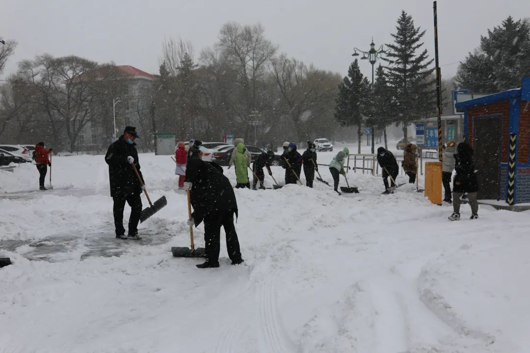 11月9日凌晨起,一场特大的橙色预警的暴风雪席卷鹤城。半米深的积雪为广大患者、群众和职工的出行带来了诸多不便。医院以雪为令,院长党委副书记李忠原、副院长艾立辉带领机关后勤职工在医院门诊楼前、院内甬路、机关教学楼及人行路进行清扫铲雪,为患者和百姓留出一条安全之路。