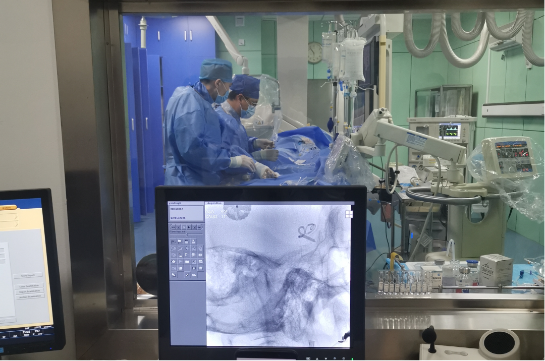 脑动脉瘤的危害极大,会引起脑积水、脑出血并发症,第二次破裂出血的死亡率高达50%以上,如果病症进一步加重,患者随时有死亡的危险。12月15日晚,神经外科为患者急诊行动脉瘤支架辅助弹簧圈栓塞术。手术进行了三个小时,一切顺利。期间刘增良副院长一直陪伴到手术结束,为手术团队提供了强大的支持和保障。