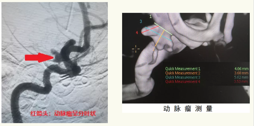 神经外科王宝庆副主任与患者家属进行了多次深入的病情沟通,征得患者家属的信任和同意,进一步行脑血管造影(DSA)检查明确诊断,DSA检查结果显示:左侧颈内动脉交通段动脉瘤。动脉瘤形态不规则,呈现分叶状,由此可见,动脉瘤破裂出血是本次发病的罪魁祸首。