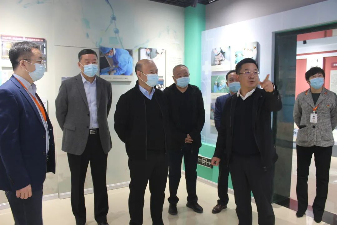 李辉总经理一行首先参观了医院院史馆。李忠原院长带领李辉总经理一行沿着历史的脉络了解医院的发展进程,从医疗技术、重点专科建设、设备仪器、人才培养、社会公益等方面介绍了医院的总体情况。讲到专科发展方向时,我院神经外科专家、副院长刘增良和神经内科专家、副院长刘忠锦向来访领导介绍医院神经内外科的发展沿革及前沿医学。李辉总经理对我院多年来取得的成绩表示赞赏,在了解到医院一直在做乡医培训工程、家庭医生签约服务、援外援疆等活动时,认为附属一院确实是秉持三甲级公立医院的公益性,积极投身织牢乡医网底工程,造福了千万百姓家,是一所值得信赖的百姓医院。