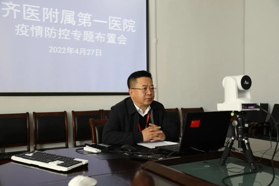 4月27日早八点,齐医附属一院召开疫情防控专题布置暨院科两级包保工作推进会,对目前我院疫情防控工作进行再部署、再落实。院长、党委副书记李忠原传达省疫情防控指挥部文件精神并作重要讲话,会议采取线上和线下相结合的方式,院领导、院科两级包保小组联络人、科主任、护士长、职能科室科长200余人参加会议。