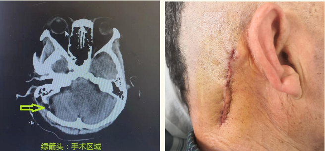 手术操作顺利,术后病人状态良好。CT动态监测,如发现术区出血及时处理。