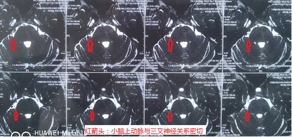 刘增良院长亲自为患者进行了查体,并给患者做了核磁共振检查,3D-TOF序列成像精准显示患者面部疼痛是由于颅内血管压迫神经造成的,明确诊断:三叉神经痛。