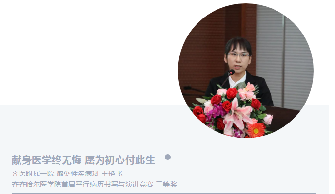 王艳飞 齐医附属一院感染性疾病科 主治医师 中共党员 教研室秘书 齐齐哈尔医学院首届平行病历书写与演讲竞赛三等奖