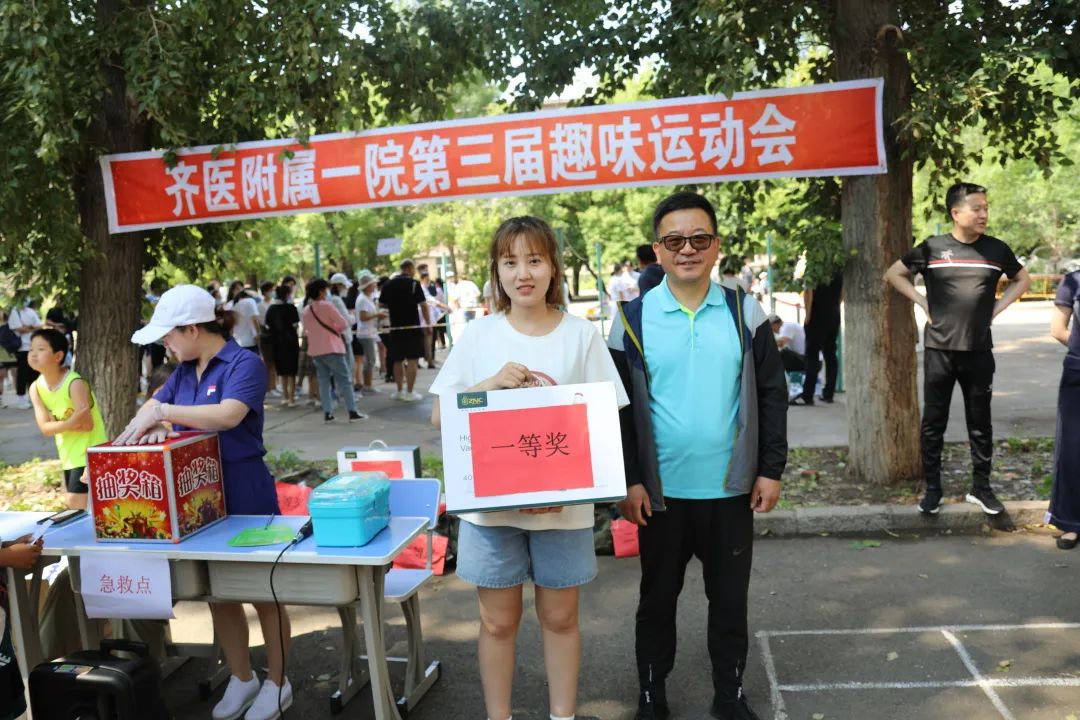 为丰富医院职工业余文化生活,建设“幸福医院”,7月2日上午,齐医附属一院第三届趣味运动会在南院区操场成功举办。副院长艾立辉主持开幕式。院领导和职工及家属积极参与,其乐融融,南院区操场变成欢乐的海洋。