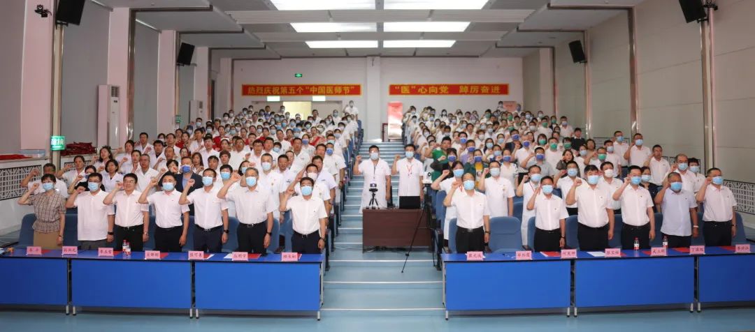 会议在雄壮的国歌声中拉开帷幕,全体医师起立,在医院管理处处长李春旭的带领下,重温《中国医师誓言》,铿锵有力的誓言是广大医务工作者对医学职业的承诺,更是对人民群众健康不忘初心的承诺。