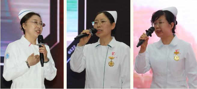 优秀护士代表许迎迎、护士长代表田婧、护理团队代表刘丽娟依次发言,分享临床一线故事,强调“以患者为中心”的服务理念,展现新时代护理人的专业素养与人文关怀。