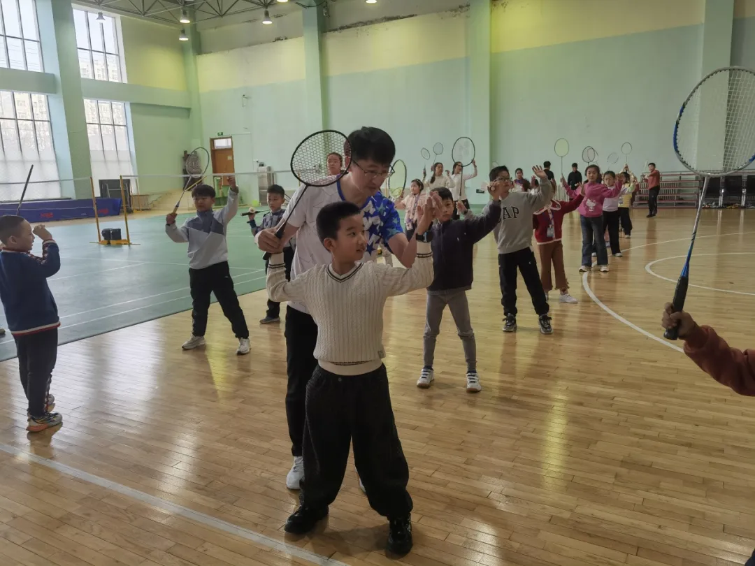 第三天的羽毛球课同样备受欢迎。医院羽毛球协会会长李剑魁老师带来专业指导,从正确的握拍、站姿,到挥拍击球的技巧,一步步耐心教学,还亲自纠正每个孩子的动作。孩子们学得有模有样,两两对练时互相配合、互相鼓励,即便偶尔接不到球,也笑着重新再来,快速入门的同时更培养了坚持的品格。
