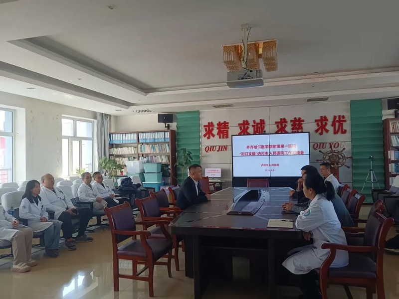 4月14日,副院长周扬、医务部副主任李富彬再次带队,率妇产科王正威副主任、心血管内二科李春红副主任医师、普外科一病区曲正伟副主任医师、儿科邱丽宏主治医师、神经外科侯悦晨医师组成的专家团队,赴讷河市人民医院开展对口支援。讷河市政府高度重视此次支援工作,副市长冯雪光、讷河市人民医院党委书记张伟、院长罗庆新、医疗副院长姜长娟、医务科科长黄玉国及各受援科室主任出席见面会。