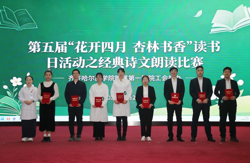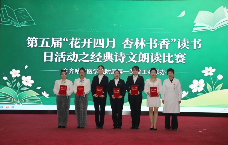 繁花似锦绘春意,书香袅袅润杏林。为传承弘扬中华优秀传统文化、丰富职工精神文化生活,齐医附属一院于4月23日举办第五届“花开四月·杏林书香”经典诗文诵读比赛。党委书记刘旭之、党委副书记吴颖、工会主席陈珊珊、党办主任李锁利、宣传科科长陈鹏、机关二分会主席(门诊部主任)谭丽娜担任大赛评委,全院百余名职工线上线下齐聚,共赴这场兼具文化底蕴与医者情怀的视听盛宴。