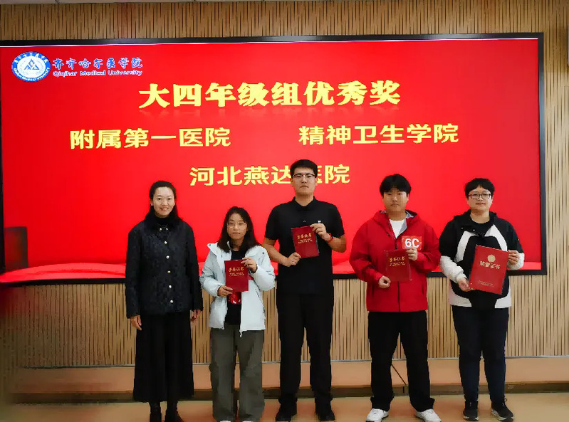 4月25日,齐齐哈尔医学院第四届临床医学类学生医学理论知识竞赛决赛圆满收官。我院精心选派两支代表队参赛。李春香副院长出席决赛现场并参加颁奖仪式。经过激烈角逐,大五年级组代表队在13支参赛队伍中脱颖而出,一举斩获竞赛一等奖,大四年级组代表队荣获优秀奖,尽显医院临床医学专业学生的雄厚实力与卓越风采。