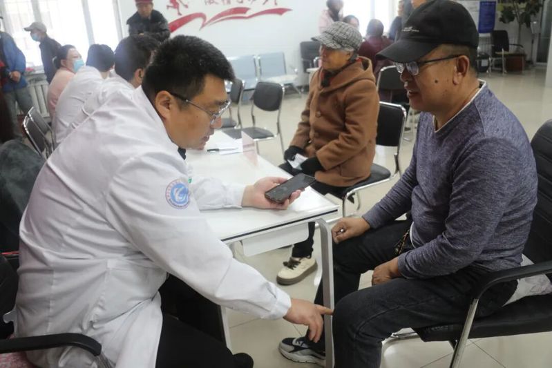 在诊疗服务区,专家团队各展所长,为居民提供 “一站式” 健康守护。骨外科诊区,龙江名医曹立新主任耐心接待每一位患者,重点排查骨质疏松、关节疼痛等病症,为腰腿痛患者提供康复训练指导和居家护理建议;心内科专家专注解答高血压、冠心病、心悸等常见问题,结合免费心电图检查结果,为患者调整用药方案并强调日常血压监测要点;内分泌科专家针对中老年人高发的糖尿病、血脂异常等问题,通过免费血糖检测筛查高危人群,细致讲解饮食调理、血糖控制的科学方法;眼科专家则开展视力检测、白内障初步筛查,耐心解答老花眼、干眼症等常见眼病的防治疑问,深受老年群体欢迎。