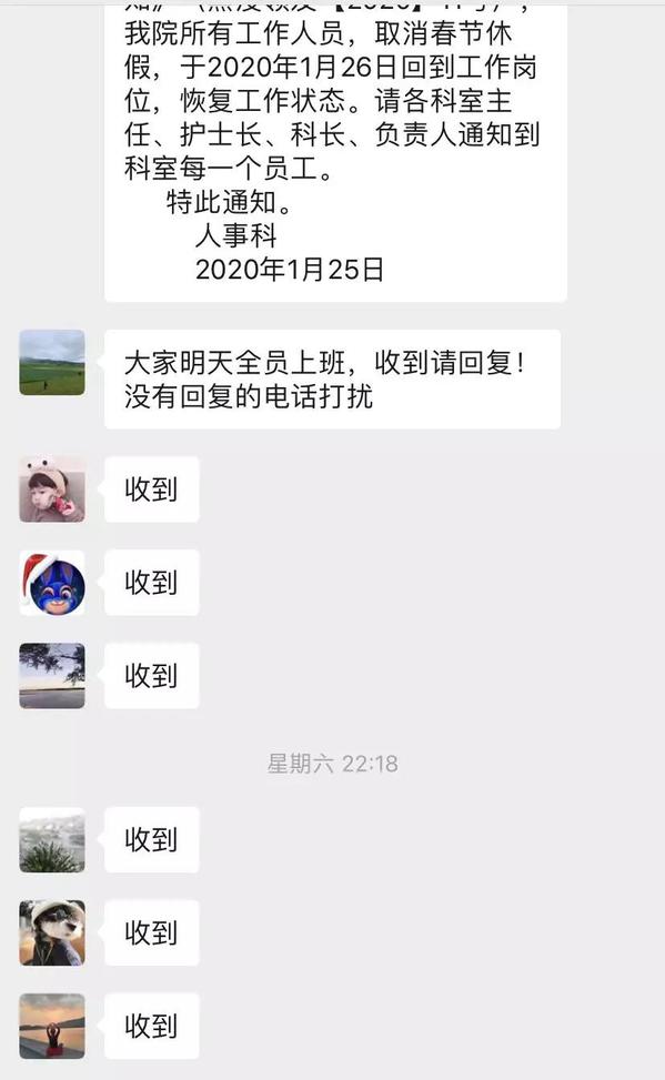 “我院所有工作人员,取消春节休假,于2020年1月26日回到工作岗位,恢复工作状态……”