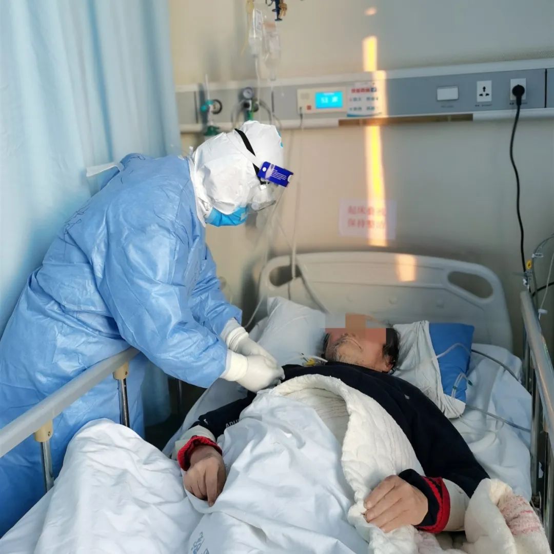 有的患者得知我们是来自祖国最北端的黑龙江支援团队时,用他最大的力气高高竖起摇晃的大拇指,为我们点赞,我们回以他同样的手势,告诉他你也是最棒的,你也要加油,我们一起打赢这场仗,我们彼此感恩,彼此泪目。