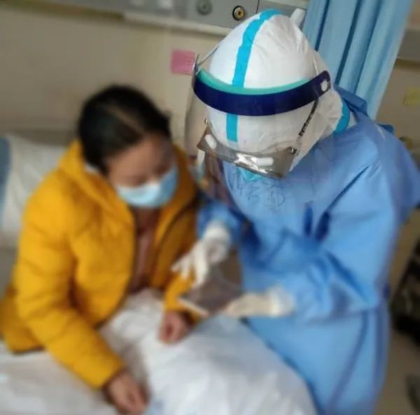 在隔离区久了,防护服会让你大汗淋漓,口罩让你呼吸不畅,护目镜会布满雾气水滴……可是,我们还能抽出时间去开导那些清醒的患者,让他们重拾活下去的勇气,有的患者是刚刚失去亲人,有的患者家里有孩子和老人,还有的患者家人在哪个病区住院都联系不上。我无数次试想,如果躺在病床上的是我,我会希望得到哪些帮助,内心会是什么样的心情,我想此时患者内心一定充满了紧张、焦虑、恐惧、孤独、烦躁、悲伤、愤怒、无助、绝望、委屈等等。于是我每次面对患者,只要有时间有机会,就和患者进行沟通,做好他们的心理疏导,帮助他们树立战胜疾病的信心,要相信科学,相信国家,相信医护人员,一定要配合治疗,让他们重拾战胜疾病的信心。同时我也把我院“317护”健康宣教的软件运用其中,定期给患者推送有关新冠的健康宣教的内容,每当我做这些工作时,都能听到“姑娘你等会儿,我戴上口罩别把你传染了”这样一句温暖的话,感觉心里暖乎乎的,这样一句暖心话抹去了被帽子口罩勒出血印的皮肤和剪短的长发所带来的疼痛和不舍。