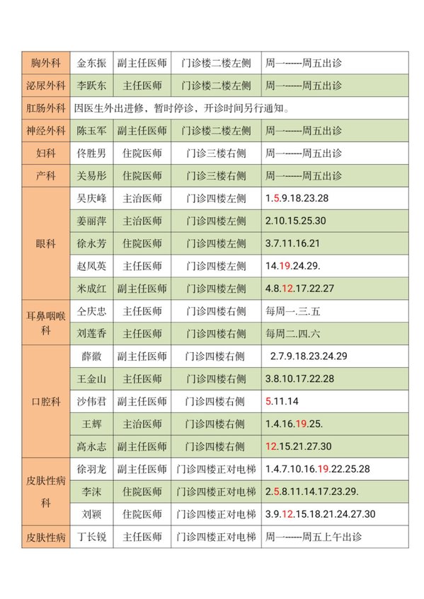 齐齐哈尔医学院附属第一医院9月份出诊表