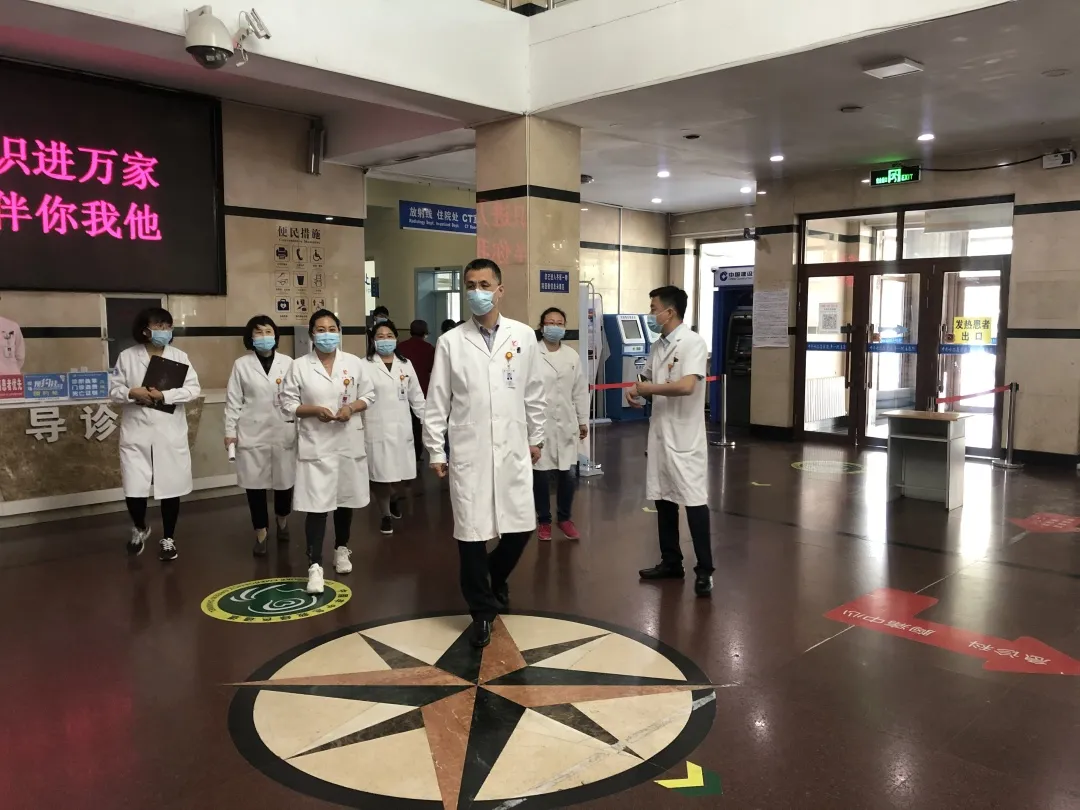 6月1日上午,齐医附属一院刘增良副院长带领医务科、门诊部、感控科、护理部、保健科、质控办等科室负责人深入门诊走流程。通过“角色转换”,在“走”中发现问题,在“走”中提出建议,切实发挥领导干部走流程,在疫情防控中的有效作用。