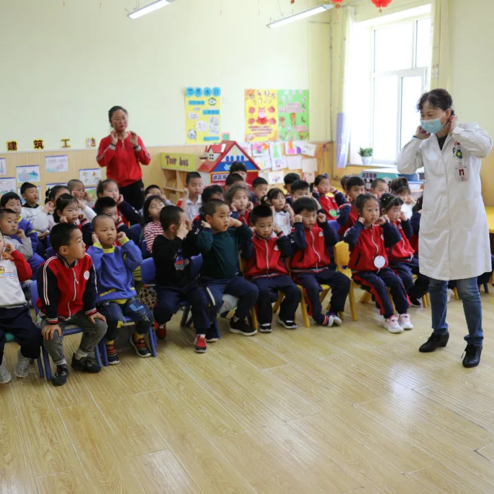 爱眼护眼从娃娃抓起,为普及科学用眼知识,我院眼科教研室主任张淑红带队,走进和平幼儿园,通过儿歌、漫画、视频的形式,为果班和苗班近百名小朋友讲解爱眼护眼小知识。教会孩子们分辨好的用眼护眼习惯,让小朋友们了解到养成良好用眼习惯的重要性,以及科学用眼的相关知识。随后,医务人员一起带领小朋友做眼保健操,孩子们认真的模样美的像花儿一样。