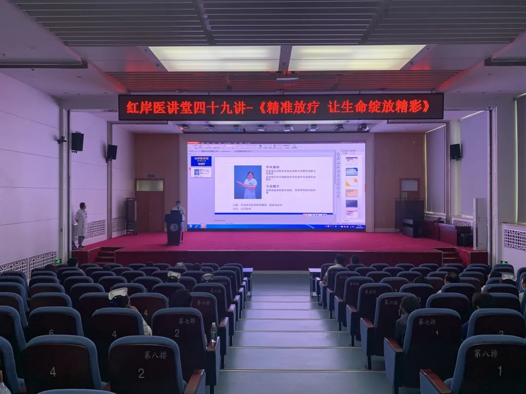 6月18日,齐医附属一院《红岸医讲堂》第四十九讲在我院内科楼学术报告厅开展,我院放射治疗科陈春荣副主任主讲——《精准放疗 让生命绽放精彩》,医院各科室主任、医疗管理相关职能部门负责人,部分医护人员参加讲座。