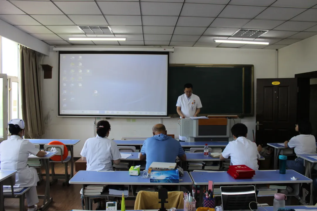 我院高度重视此次比赛,邀请普外科专家马晓鹏教授、眼科专家张淑红教授、检验科专家徐亚茹教授、护理部主任范桂红教授、党办主任吴颖副教授担任评委。为了做好此次比赛,各教研室认真选拔,精心准备,各位参赛选手依次进行10分钟说课和20分钟教学展示,参赛教师们准确把握思政元素和专业知识间的融合路径,利用有效的融合方式,生动自然为我们呈现了一场课程思政示范教学的感观盛宴。