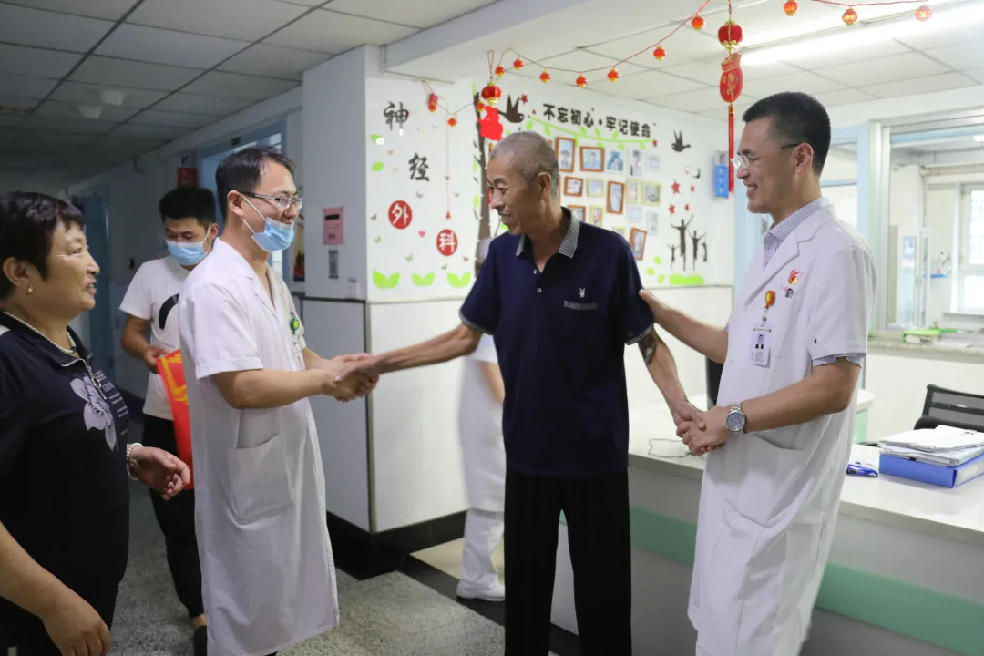 7月12日,丁大爷一家高高兴兴出院了,他说:“我现在头不晕了,腿不麻了,肿瘤摘除了,微创手术治好了我的病,感谢刘增良副院长和王宝庆副主任,感谢附属一院”。