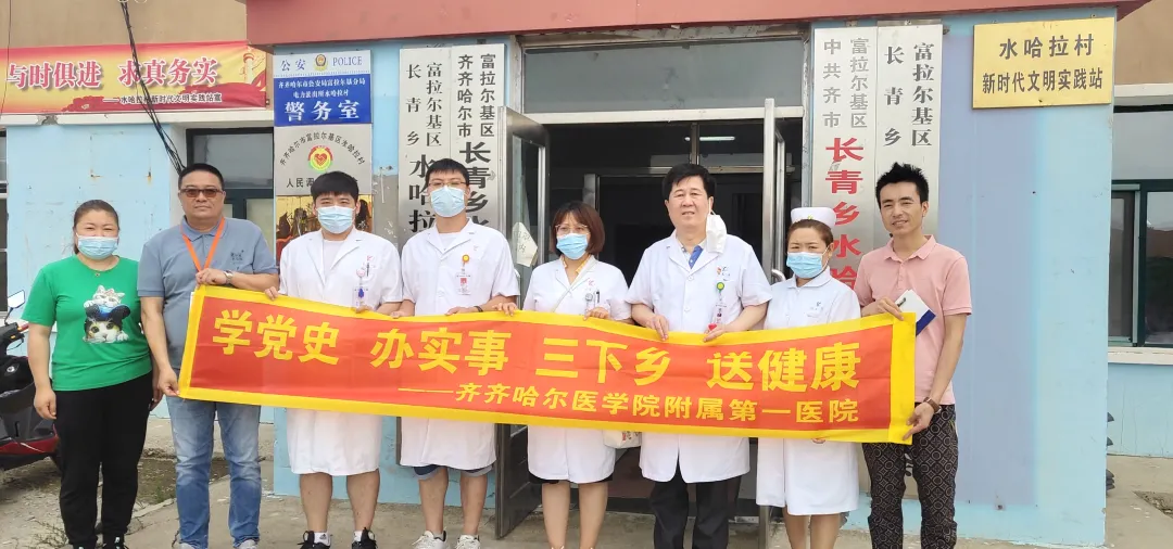 为扎实推进党史学习教育,深入开展“我为群众办实事”实践活动,7月15日,齐医附属一院普外科二病区孙忠滨主任、神经内科五病区二组郭宇医生、骨外科二病区周重谕医生和胡长玲护士、超声科技师高帅共同组成的专家团队在医疗合作办的带领下走进长青乡水哈拉村,开展“学党史 办实事 三下乡 送健康"活动,将医疗服务送到老百姓家门口。