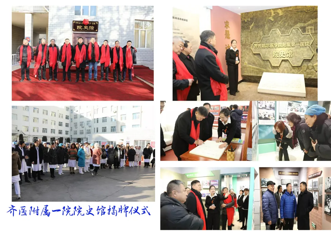 齐医附属一院院史馆于2019年12月对外开放,是齐医附属医院中,也是辖区内唯一一家医院展览馆。展馆从谋划至建成历时两年,采访了200余人,内有8个展厅、292块展板、376张照片以及数十件实物,按照时间跨度分为医院诞生 初具规模(1954-1966)、经历风雨 磨砺前行(1976-1986)、励精图治 人才辈出(1986-1998)、勇立潮头 继往开来(1998-2008)、不忘初心 砥砺前行(2009-2019)五个历史展厅。传承红色基因,结合富拉尔基地域的红色定位,探究红岸医学发展历程,以烙有沧桑痕迹的物证史料和实物相结合的方式,完整的再现了医院从创建至今的峥嵘岁月,立体化、多角度展现了红岸现代医学发展历程和医务人员的精神风貌。建馆以来,院史馆累计接待省、市领导、老校友、本院职工、工矿企业、学生、社区群众等参观人员2000余人次。