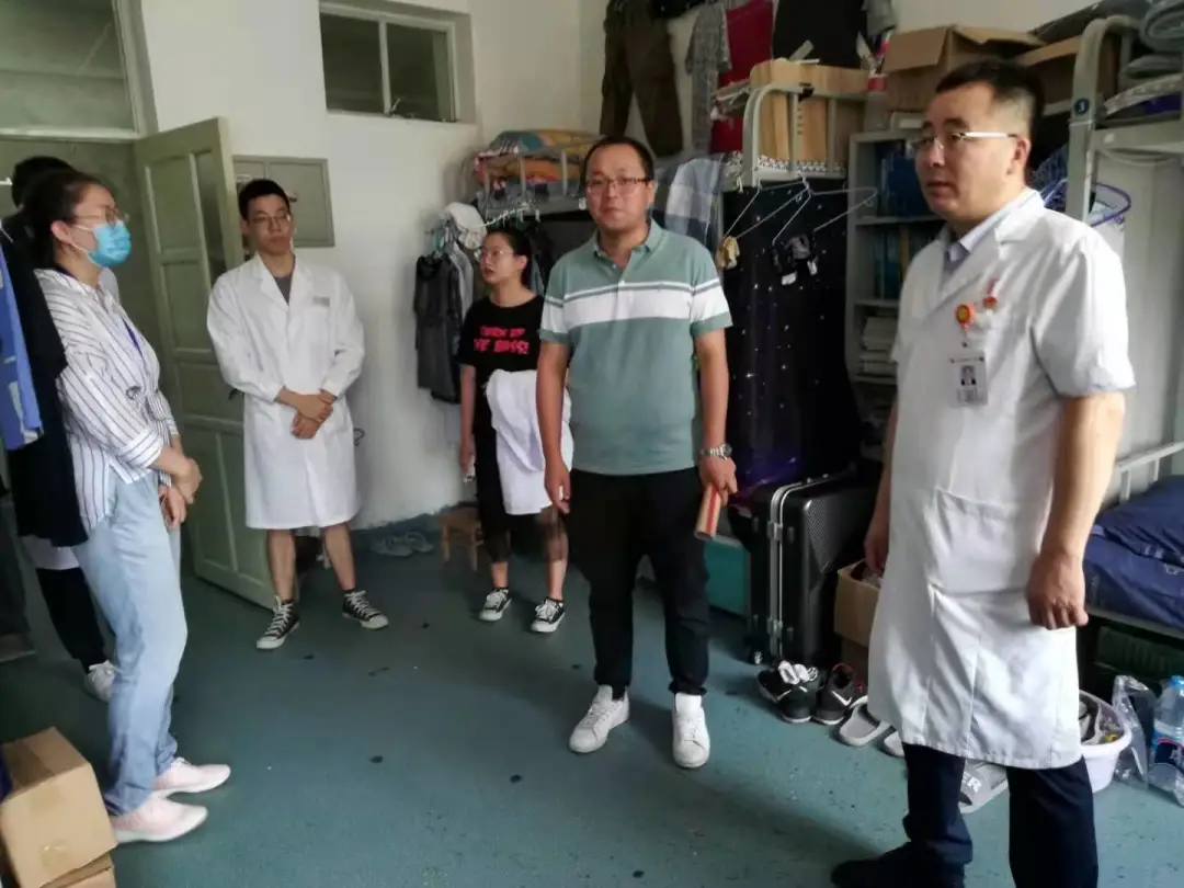为切实了解我院17级临床专业学生在附属第二、三医院的毕业实习情况,进一步加强实习教学过程管理,及时查找和整改实习中存在的问题,不断规范实践教学工作,提高毕业实习质量,保证教育实习工作扎实有效开展。7月27日,齐医附属一院副院长刘忠锦带领学生科副科长马鑫、17级辅导员苏爱香、雷雨晶一行前往附属第二、三医院,对我院在两家医院实习的101名17级实习生生活环境、学习环境进行实地考察。