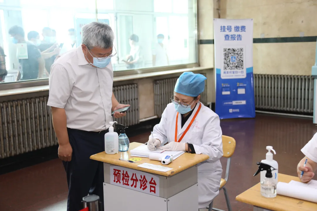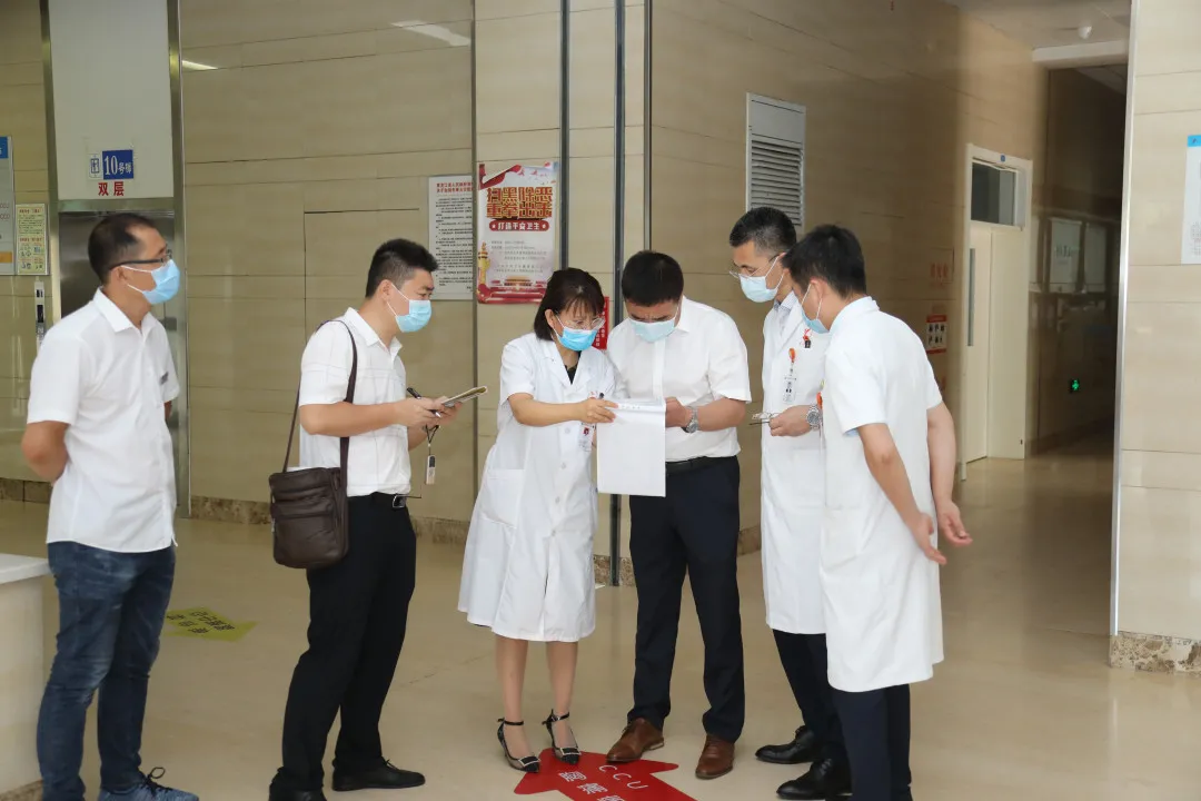 在医院门诊大厅,检查组成员体验了扫码、测温、登记、消毒、流调等患者入院流程,认真了解医院预检分诊、门诊管理及急诊医学科,检查相应记录,并提出科学合理的整改意见,要求医务人员要加强门诊就诊患者管理,规范消毒记录,守住医院疫情防控第一关。