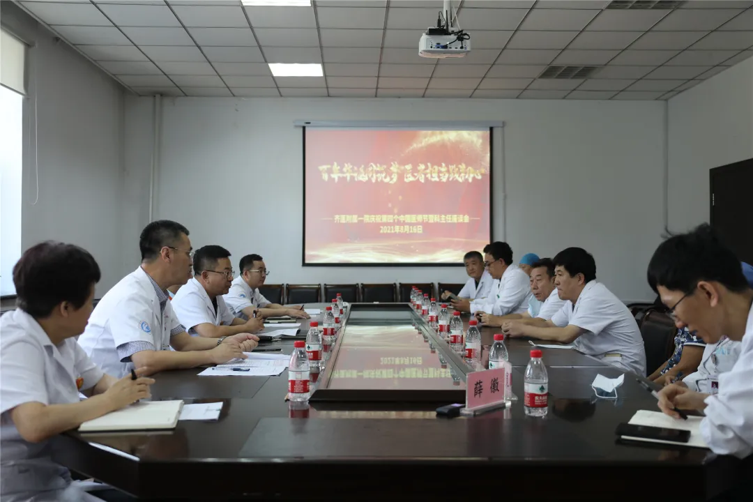 为庆祝第四个中国医师节,2021年8月16日下午,齐医附属一院组织召开了医师节科主任座谈会。医院领导班子成员与10名科主任代表参加座谈会,座谈会由副院长刘增良主持。