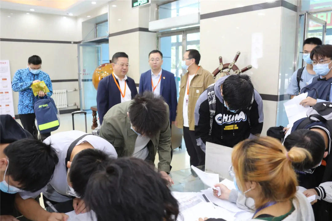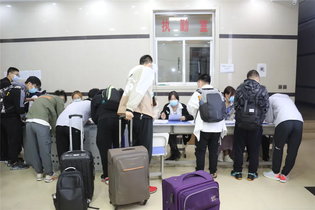 副院长刘忠锦带领学生科副科长马鑫到富拉尔基火车站迎接新生,询问他们返校路途的情况,并将他们送上返回附属一院的大巴。到达医院后这些“新生”整齐有序的办理入住相关手续,在科辅导员老师、志愿者的带领下,寻找各自的宿舍、班级、领取行李。同时为了加强疫情防控工作,医院组织新生统一进行核酸检测。
