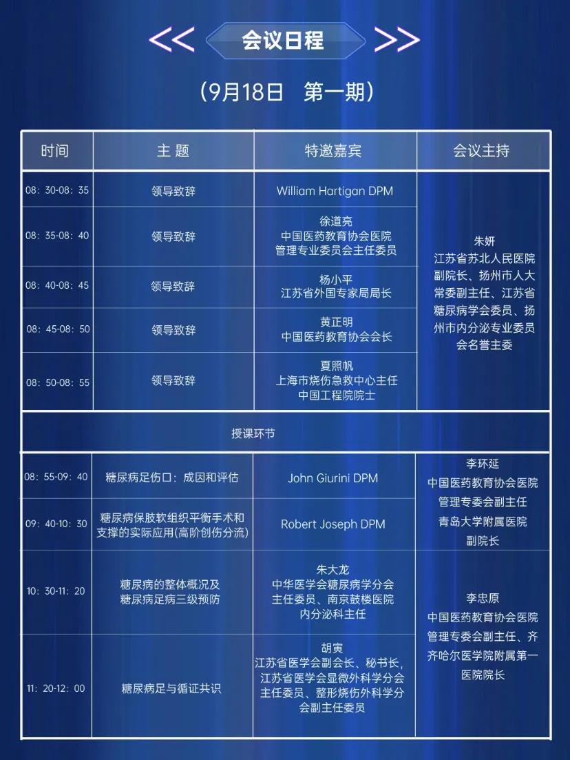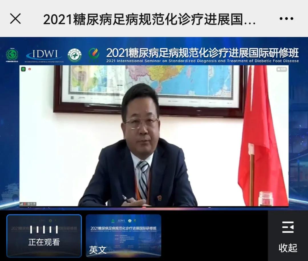9月18日,由中国医药教育协会主办的《2021糖尿病足病规范化诊疗进展国际研修班》第一期通过线上线下方式同步展开。会议邀请到中国医药教育协会会长黄正明、苏北人民医院党委书记徐道亮、中国工程院院士夏照帆、哈佛大学医学院及其附属医院的国际著名专家团队等国内外知名专家学者带来精彩课程,我院院长、党委副书记李忠原教授受邀担任嘉宾主持。