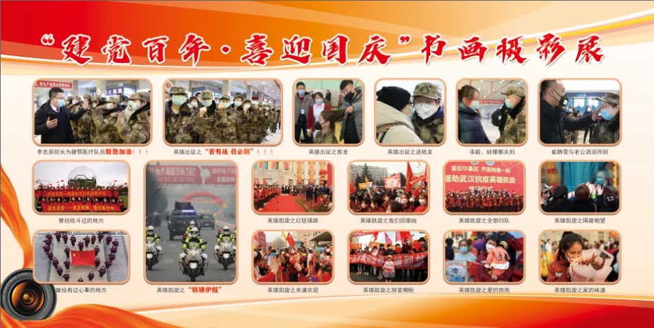 赞颂新成就、奋进新时代。为喜迎国庆,丰富医院职工业余文化生活,浓厚医院文化氛围,齐医附属一院举办“建党百年·喜迎国庆”摄影作品展,以此向党的百年华诞深情献礼,祝福伟大祖国繁荣昌盛。