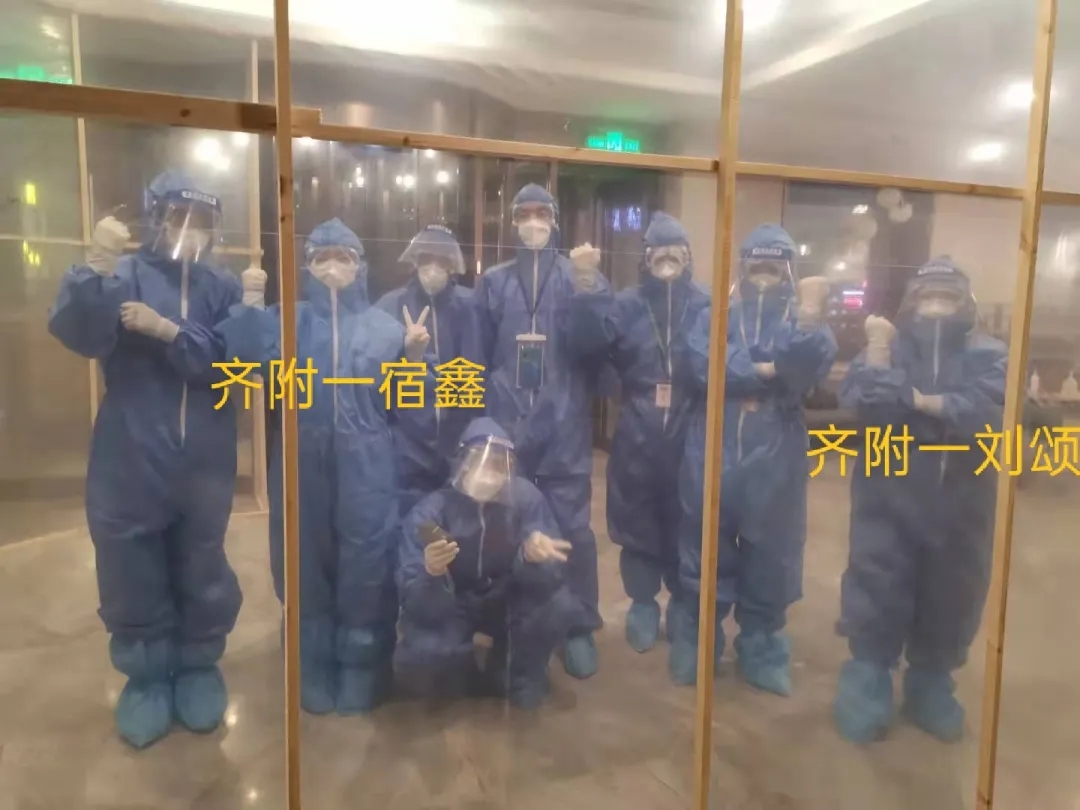 我和宿鑫被派到了哈尔滨南岗区宽桥街一隔离点,此隔离点于10月3日临时组建,工作人员20人,隔离人员84人,是来自巴彦县的第一密切接触者。我和宿鑫隶属于医务组,负责所有人员的核酸采集、环境物表采集、每天两次体温监测、巡视,健康状况管理、慢病人群的管理、心理疏导、处理突发事件、清点防护物资、整理和填写各种表格……常常工作到深更半夜,每天穿着不透气的防护服,经常是汗水模糊了双眼,浸湿了衣襟。