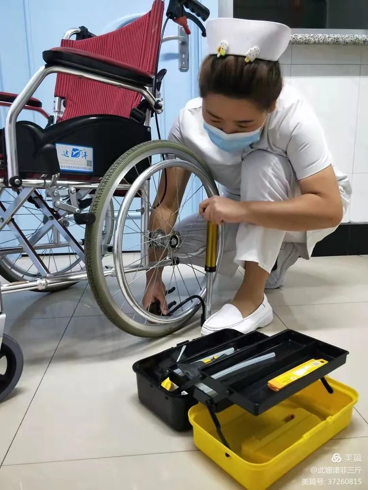 轮椅和平车是科室常用的外出工具,偶尔会出现车气不足,科室备打气筒和工具箱,以确保轮椅的安全和正常使用,为了患者更好的安全出行。
