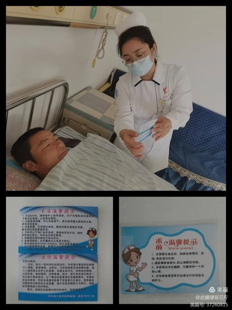 一台成功的手术,更需要术前、术后以及出院后的细心照顾。对于年龄大的陪护,记不住一些注意事项,我们把相关注意事项制成卡片,患者和陪护随时都可以看看要注意哪些。