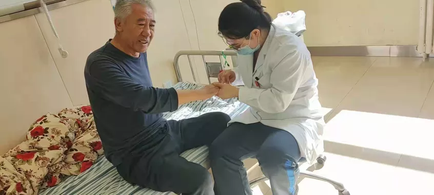 在治疗的过程中,发现患者的手指甲偏长,由于患者存在肢体功能障碍,无法自己进行修剪,医务人员主动帮助患者修剪指甲,并细心的将指甲的边缘磨平预防患者划伤自己的皮肤。细节深处,对患者无微不至的关怀。