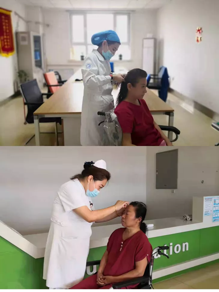 康复治疗是一个漫长的过程,长时间的住院治疗,给患者的生活起居带来了不便。在病情一步步好转的过程中,患者也逐渐有了康复的信心,为了让患者在康复的过程中保持愉快的心情,为一些爱美的患者修整眉毛、梳理头发编辫子,让患者美丽与康健并行。这些贴心的举措更进一步的拉近了我们和患者之间的距离。