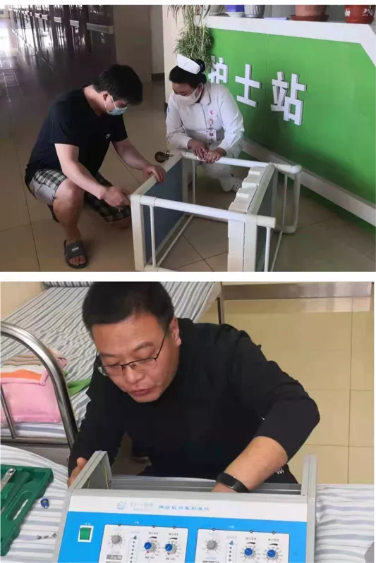 良好的医患关系不仅是医务人员的热情服务,还有患者与家属的热情回馈。这是患者家属协助我们进行设备的维护。