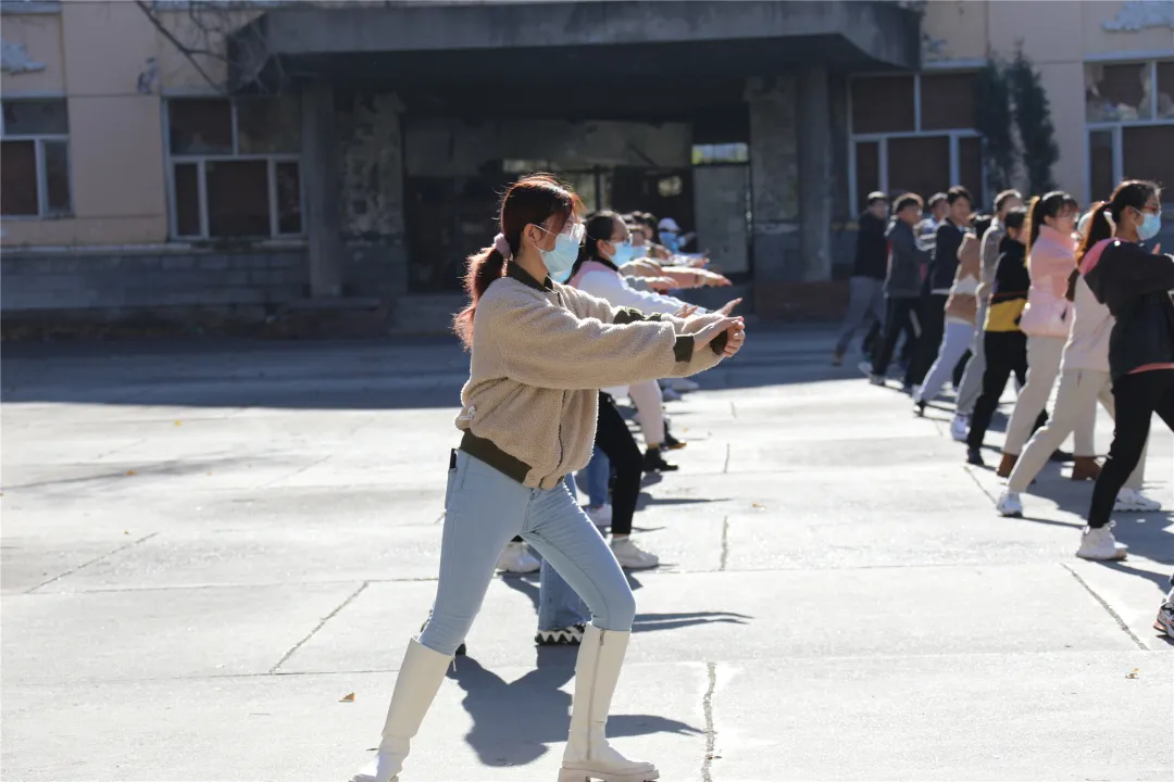 操场上,青春的活力在清晨微凉的空气中荡漾,伴随着缓缓升起的朝阳,我院学生开始了早操。十月的清晨透着丝丝寒意,但这并没有影响我院学生的上操热情。我院学生伴着音乐的节奏精神抖擞、整齐划一,行云流水般完成太极拳的每个既定动作,每个动作都充满活力,尽情挥洒着青春的热情。充分展现了我院学生全面发展,斗志昂扬的风貌。早操开始了