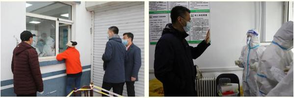 副院长刘增良、医务部张羽镝部长、护理部宿冰到每个检测点,看望参与核酸采样的医护人员,检查指导核酸采样工作。