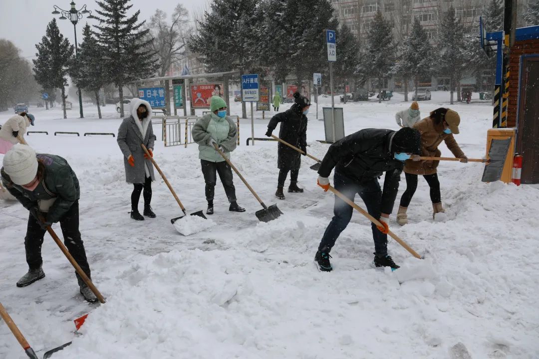 11月9日凌晨起,一场特大的橙色预警的暴风雪席卷鹤城。半米深的积雪为广大患者、群众和职工的出行带来了诸多不便。医院以雪为令,院长党委副书记李忠原、副院长艾立辉带领机关后勤职工在医院门诊楼前、院内甬路、机关教学楼及人行路进行清扫铲雪,为患者和百姓留出一条安全之路。