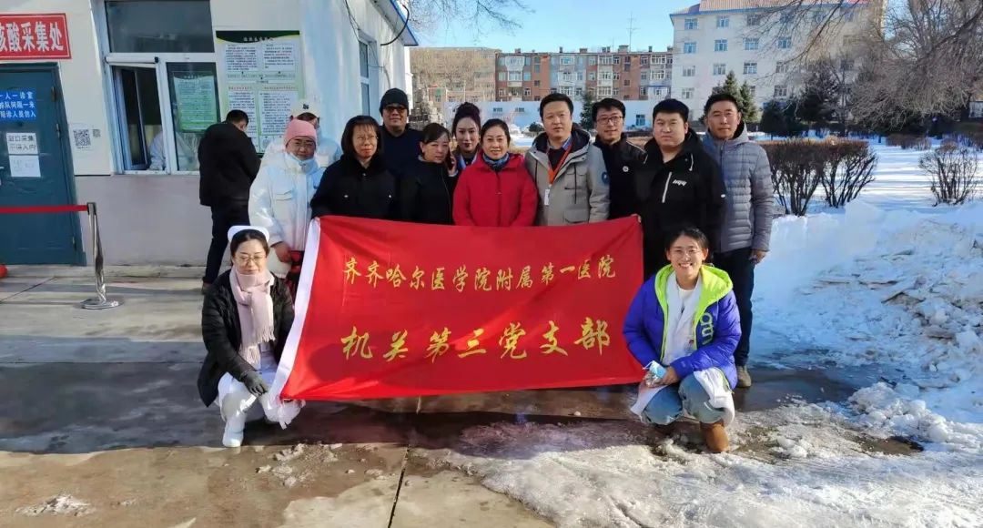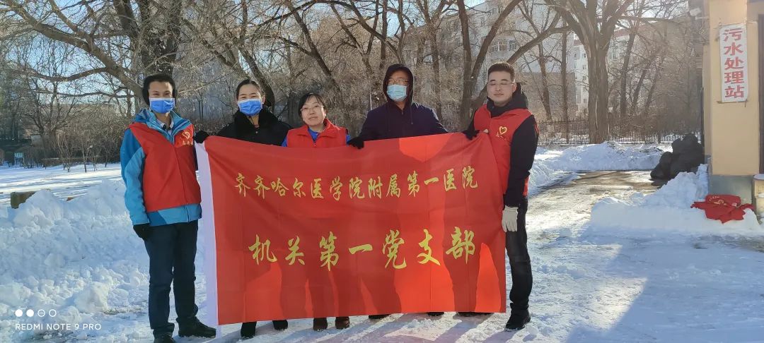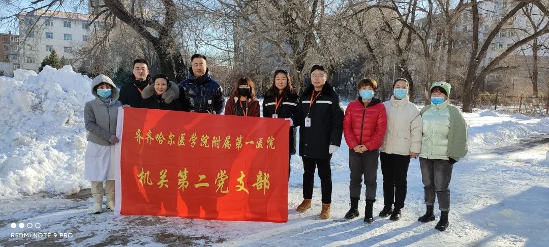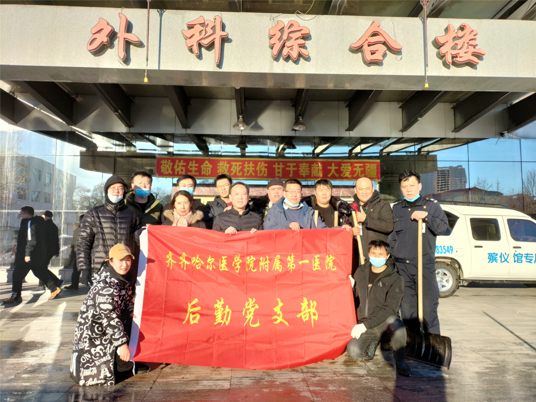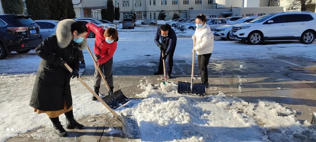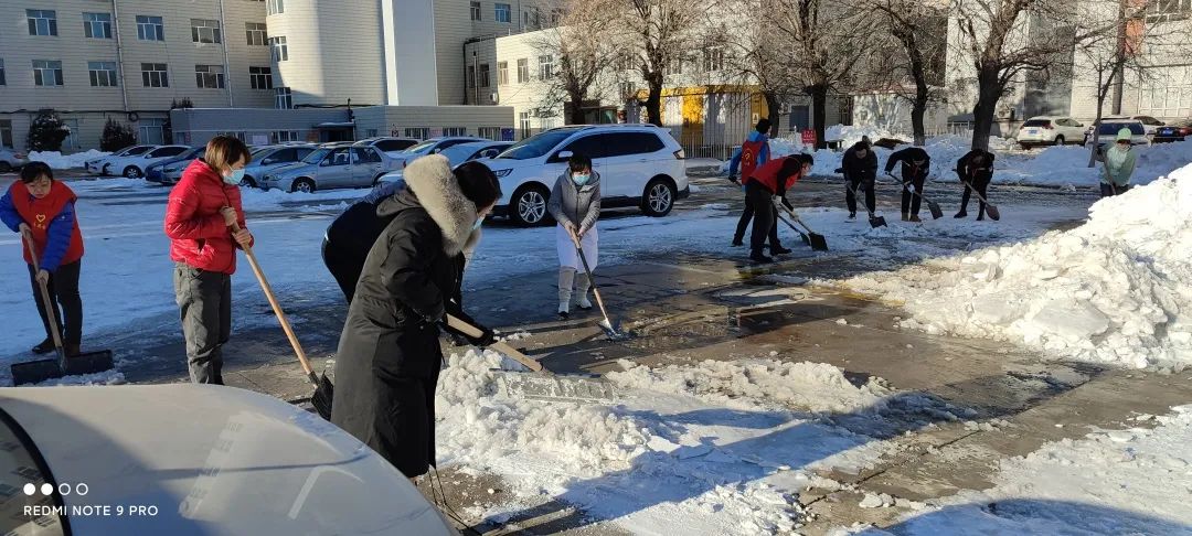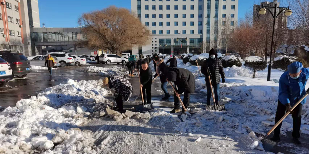 清雪过程中,各支部党员不畏严寒、干劲十足挥舞着铁锹,铲雪、堆雪、扫雪对核酸检测点、医院停车场、外科楼前通道以及门诊楼前等出入要道进行清理。为医院患者及医务人员开辟了“安全通道”。