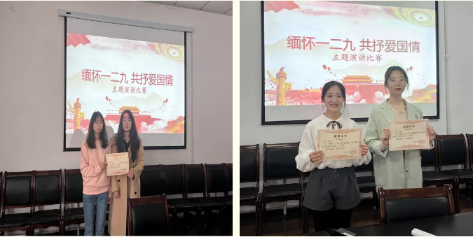 本次演讲比赛共有8名选手参加,以纪念“缅怀一二九,共抒爱国情”为主题进行演讲,选手们的演讲激情四射,展现了青春的风采,让参会的老师以及同学们重新理解、铭记了了“一二•九”学生运动的这段历史。