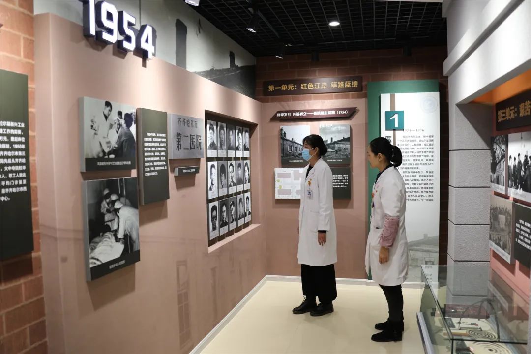 在院史馆,刘惠书记依次参观了附属一院六十七年发展历程的多个展厅,宣传科副科长孙双滨对馆中展出历史资料、历史图片进行了一一讲解,生动地再现了老一辈附一人人艰苦创业、辛勤耕耘的坎坷历程。刘书记表示,经此参观,感受到了几代附一人救世济人的医者情怀,领略前辈们高尚的医德和严谨的风范,理清了附属一院六十七年的历史沿革、发展脉络,展现了医院的历史文化。刘书记表示,医院接下来要以“思想建党、文化建院”理念为引领,提高党建质量,激发广大职工爱院如家、不畏艰苦、顽强拼搏的精神,为实现医院高质量内涵发展注入新动力。