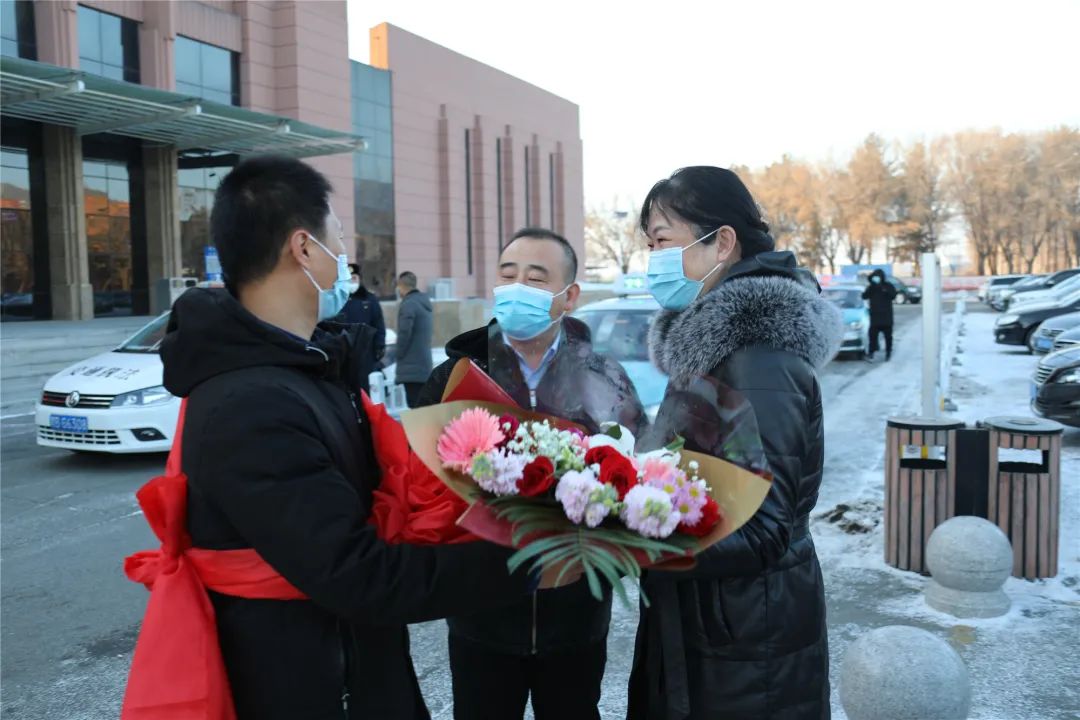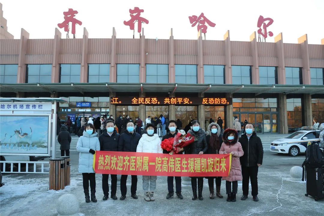 1月12日下午,齐医附属一院援疆医生高伟圆满完成对新疆北屯市第十师一一八团医院医疗援助任务,载誉归来。齐医附属一院党委书记刘晖、副院长刘忠锦、梅里斯分院院长孙立冬、内分泌科主任护士长及医务部、团委负责人前往机场迎接。