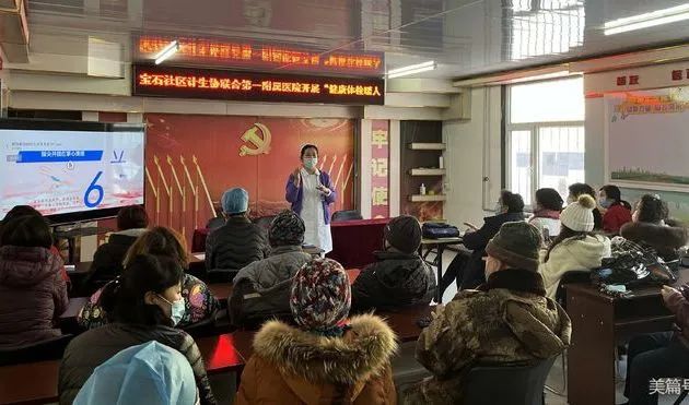 “弘扬大医精神 传播健康理念”,1月20日,齐医附属第一医院护理宣传小组联合医疗合作办来到宝石社区活动中心,以“天使护生命,科普惠健康--护卫健康,未病先防”为主题,开展科普活动,社区周边近40名居民参加了此次活动。